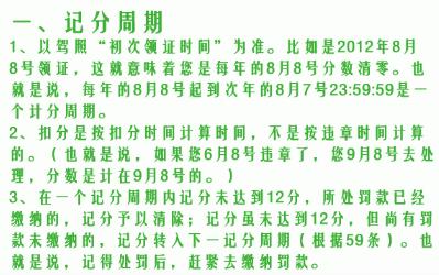 2、如果驾驶证的初次领证日期是2010年5月x日,那么驾驶证记分周期就是:从2010年5月x日的零时起至2011年5月x日二十四时止。