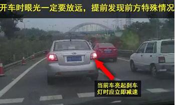 开车时必须注意力集中,视线看到150米以外,使有情况时能及时发现,发现情况后能及时减速,尽量避免急刹车操作造成忙中出错。