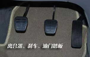 (5)使用离合器踏板时,应以前脚掌部位踏住离合器踏板,不可用脚心部位踏下离合器踏板,因使用脚心部位不易将踏板踩到底,会影响起步和变速的操作。也不可用脚尖踏下离合器踏板,以防滑落。