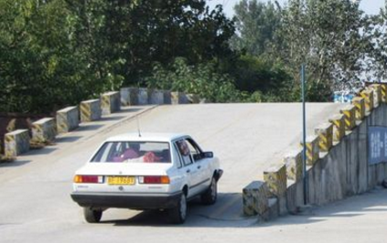 控制速度缓慢行驶,科目二就是要稳,这样就不容易才出错,容易微调。下坡的时候离合也带着,脚刹带一点,控制速度。太快了对下一个项目有影响,要稳。