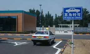 难点:中间不能停顿,彻底否定了电子桩考试中,原地打死方向及辨认吊杆与前挡玻璃标记的做法。此外考生需重新学习如何从后视镜观察边线。