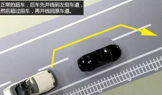其次,在超车时,应先打开左转向灯,向前车左侧靠近,并鸣喇叭(禁止鸣喇叭地区和夜间须用变换远近光灯示意)通知前车,确认安全及前车让超后,加速并与被超越车辆保持一定的横向间距,从左侧超越。