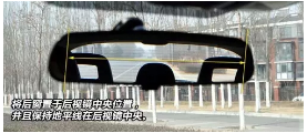 相对来说车内后视镜的调节比较容易,首先保持合适的坐姿,然后将后窗映射在后视镜的中央,并且保持后视镜内的地平线维持在镜面中央即可。