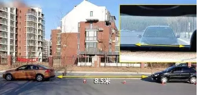 三厢车在前:同样的道理,三厢车后窗横截面积小,并且一些车型尾部上翘,一定程度上影响了视线,不过此时距离后车还有一段距离,可达8.5米,算是一个安全距离。