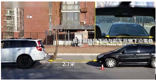 SUV在前:虽然此时后车半个车身已经消失在镜面之外,如果这时你在倒车,大可不用慌张。由于SUV车身高,辆车近距离停放,小车自然会被挡住半个车身,此时两车相距大约有2.7米左右。