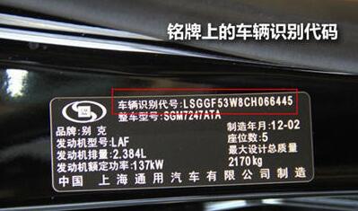 3、其它地方:如保险单上、发动机室内的各种铭牌上、 驾驶员侧车门柱上等。