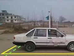 (5)左出库时要注意,看一下左边车身距离库线的大小,适当调整方向盘