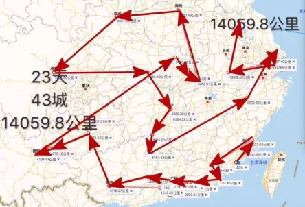 截止今日,25天22个小时,走过45城,里程14939公里!哨子拔寨111城!平均保持每天5波会谈!