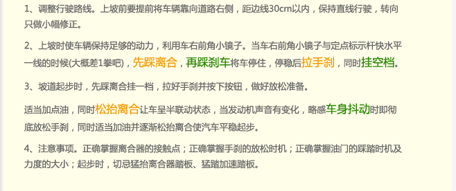 3、上坡前应在最短时间内把方向调正。