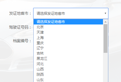1、选择发证地省市,也就是你的驾驶证是在哪个省市考的就选择哪里,如果没有找到对应的省市,说明该省市暂未开通。
