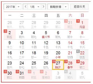 2017年春节放假时间安排: