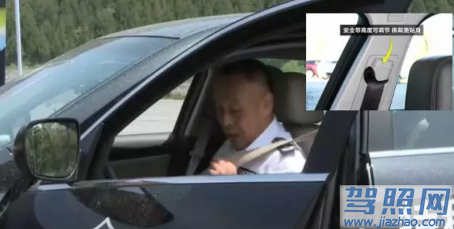 首先调整安全带的高低,正、副驾驶座的安全带是可以调节高低的,使安全带斜拉带从肩膀到锁骨下方经胸前通过,插入固定座。