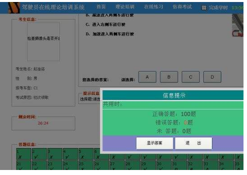 5、考试过程:90分过关,每道题2分,其中错误回到,会有5秒多钟的等待时间,所以在考试的时候可以数一下等待时间,不要超过5个。