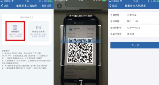 采用“扫码备案”的,待备案机动车车主用户登录“交管12123”手机APP,生成待备案机动车二维码(二维码3分钟内有效),需要备案该机动车的用户使用“交管12123”手机APP扫码。