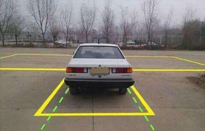 4、首先直线倒退,当看到右后窗窗花和库线重叠时,向右打死方向继续退。