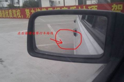 1、轻抬离合使车后移,看左后视镜,当左起点感应线稍微过左后视镜,到位置时把转向盘左打死。