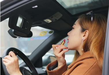 在行车时不要化妆,就算是等红灯停驶时,一旦其它车辆对您造成碰撞,轻者可能口红擦到脸上,重者伤到脸部,本来是为了更美,这样一来倒变得不美丽了。