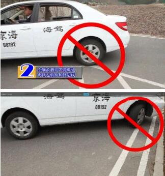 2、车辆前后轮不得碾轧考试左侧角和路边线