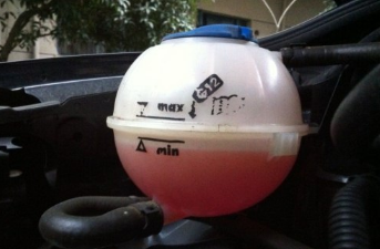 3、冷却液的膨胀率一般比水大,若无膨胀水箱,冷却液只能加到冷却系容积的95%,以免冷却液溢出。