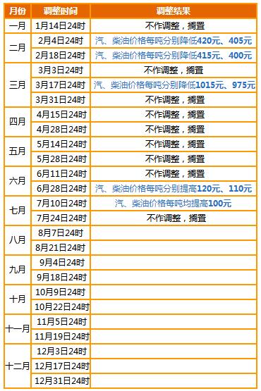 1月油价调整时间:1月14日24时