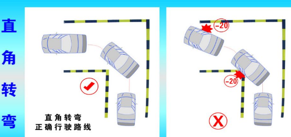 温馨提示:直角转弯,考试中相对比较简单些,但是却容易失误的项目。