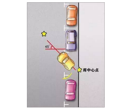 用车尾去找车库的中心点,然后保持约45度角的位置入库。当车尾快碰到马路牙子后,快速反打方向盘,将车头送入车位,最后微调即可另外,还有几点需要注意: