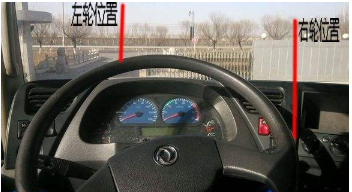 因为驾驶员位置靠左,因此预判右侧车轮时的方法与左侧稍有不同。当右侧车道白线与机器盖中央位置重合时车辆就基本轧线了。