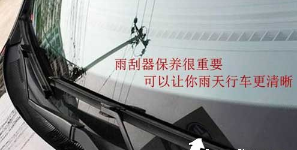 雨刮虽然搁在挡风玻璃上,但日常保养时人们却很容易视而不见,等用上了才知道有问题。雨刮片的保养方法其实很简单。每次洗车时除了洗净玻璃窗,最好也用玻璃清洗液擦拭雨刮条,这样雨刮条的寿命就会长一些。如果由洗车店代劳清洁,可以提醒一下店员为你做这项工作,将雨刮开关置于各种速度位置处,检查不同速度下雨刮是否保持一定速度。还有就是检查刮水的状态,以及刮水支杆是否存在摆动不均匀或漏刮的现象。这两种故障出现任何一种,都意味着雨刮叶片有损坏。另外,要注意一下雨刮在工作中是否有震动和异响。