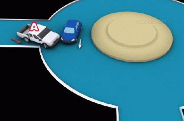(十二)进入环形路口的车未让已在路口内的车先行,图中所示为A车负全责。