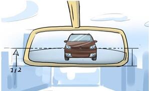 左、右位置调整到镜面的左侧边缘正好切至自己在镜中影像的右耳际,这表示,在一般的驾驶情况下,从中央后视镜里是看不到自己的,而上、下位置则是把远处的地平线置于镜面中央即可。