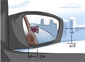 上、下位置是把远处的地平线置于中央,左、右位置则调整至车身占据镜面范围的1/4。