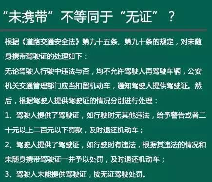 对于这种忘记带驾驶证的情况,交警会按照“没带证”处理,不会判定为“无证驾驶”。交警也不会拘留车主,只会暂时扣车,等车主带驾照去交通队取车。