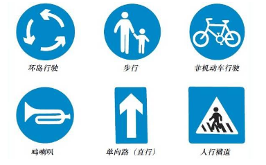 指示标志的颜色为蓝底、白图案;