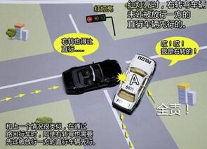 5、小路进大路右转和红灯右转,看好一辆车,紧跟该车右转比较安全。但要防止其它车道的车换线,所以当第一车道没车,第二车道有车时,就要看准第二车道的车辆之后右转。