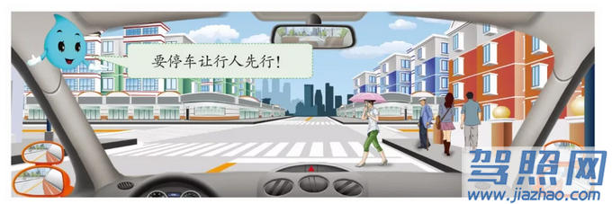 驾驶机动车在交叉路口,遇到行人不走人行横道横穿道路时,应及时减速停车让行,不得加速从行人两侧绕行通过。