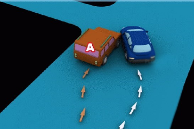 (十四)超越前方正在左转弯车的,图中所示为A车负全责。