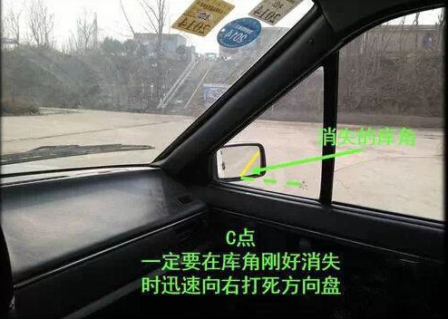 1、 轻抬离合使车后移,看左后视镜,当左起点感应线稍微过左后视镜,到位置时把转向盘左打死。