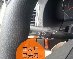 关大灯,开示宽灯、警示灯(两手不可都离开方向盘)