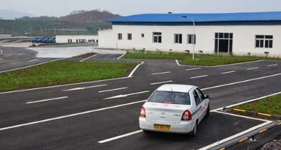 9、车沿左侧前进,当车头中间压道路左边线时尽快向右打1圈半(回正),随后根据路况再向右打1圈,并适当调整;