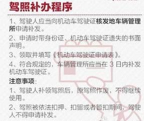 补办驾驶证手续十分简单,填写一份机动车驾驶证遗失书面声明,车管所受理业务后,在1个工作日内就会核发新的驾驶证,一般当天您就可以拿到新的驾照了。