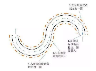 需要注意的是行驶过程中车轮不能压线,下面是曲线行驶的步骤要点与技巧。
