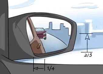 3.调整车外后视镜,让地平线处于后视镜水平中央位置,并显示一小部分自身车体。
