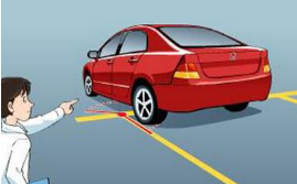 反之,在车尾已经进库,车头未进库时,车尾如果偏向中线一侧,其原因是回方向盘的时机偏晚,或者太慢所致。就是说,车尾的中点已经对准车库底的中点了,你车的方向盘还没有回正,你再分析一下,车在这个时候是不是斜着偏向中线啊。