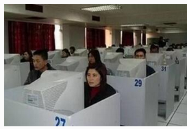 2、排队到你后,把考试卡交给考场工作人员,他们会给你安排考试机器。