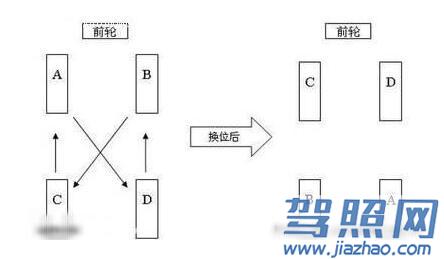 给轮胎进行换位的时候是要遵循一定规律的,如果是前驱或者后驱的车辆,那么对它们采用的是对角交叉操作,简单来说,就是将车子左前方轮胎调换到右后方位置,将右前方轮胎调换到左后方位置,这种调换的方式比较容易做到,在更换之后轮胎薄弱的位置就能减少一些磨损了。
