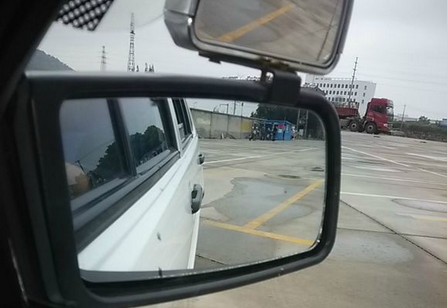 这是我个人在实际训练中摸索出来的一点小规律,那么这些规律是建立在正常停车位,正常起打方向匀速无中停基础之上,在这里我就不罗嗦了,首先,左右后视镜调整到*车身占据镜面三分之一,后门把手在三分之一顶端。以普桑库规范尺寸右倒库为例。