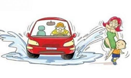 在雨天时经常看到很多车辆在开过路边时,依旧加速通过而此时路边的积水会变成巨大的水花溅到行人的身上,这种做法非常缺德。