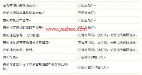 5、夜间通过急弯、坡路、拱桥、人行道或没有交通信号灯控制的路口。 (远、近光灯交替使用:先变远光再变近光;操作就是下) 超方向盘这边连续抬两