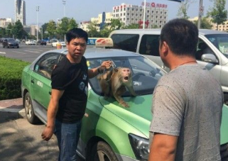 由于怕发生猴子再次抢夺方向盘,出租车司机停车“拒载”,引起“猴王”大怒,冲司机狂叫。
