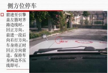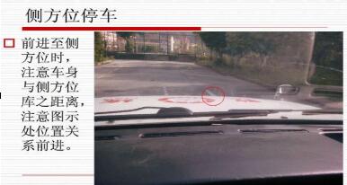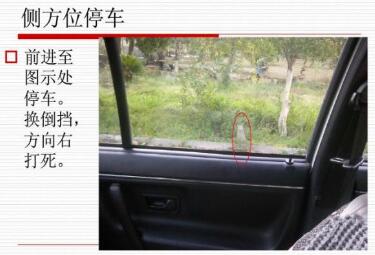 1、前进至侧方位时,注意车身与侧方位库之距离,注意侧方位停车技巧图解处位置关系前进。
